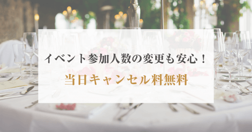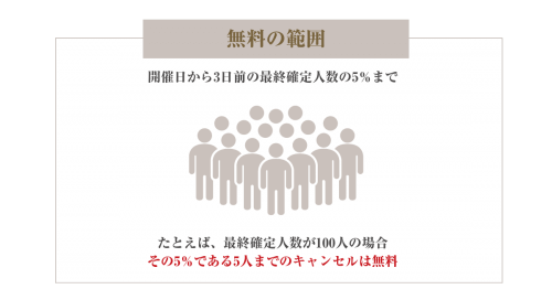 なお、キャンセル料金無料の対象となるのは、開催日から3日前の最終確定人数の5%までです。